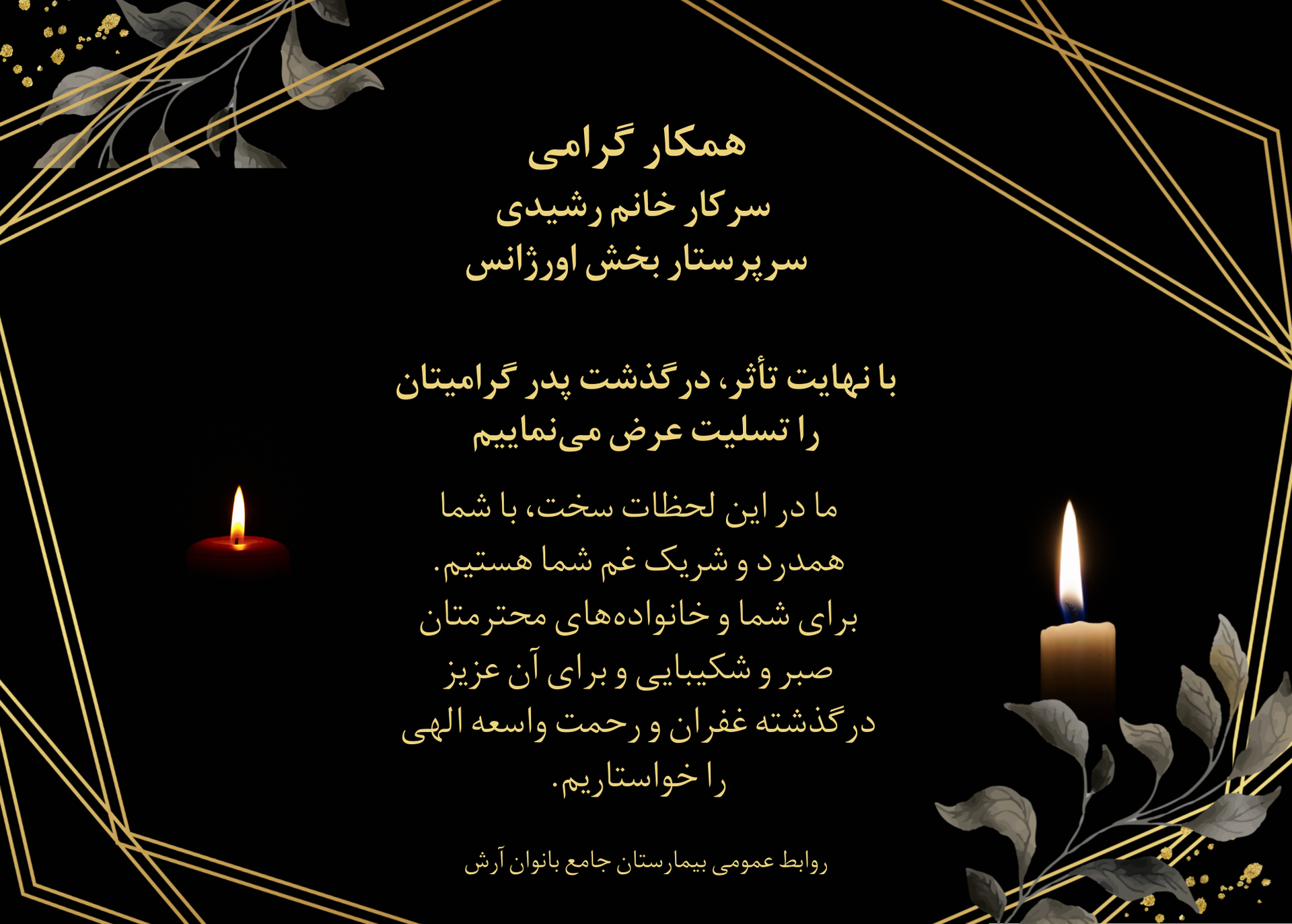 پیام تسلیت به مناسبت درگذشت پدر سرکار خانم رشیدی سر پرستار بخش اورژانس