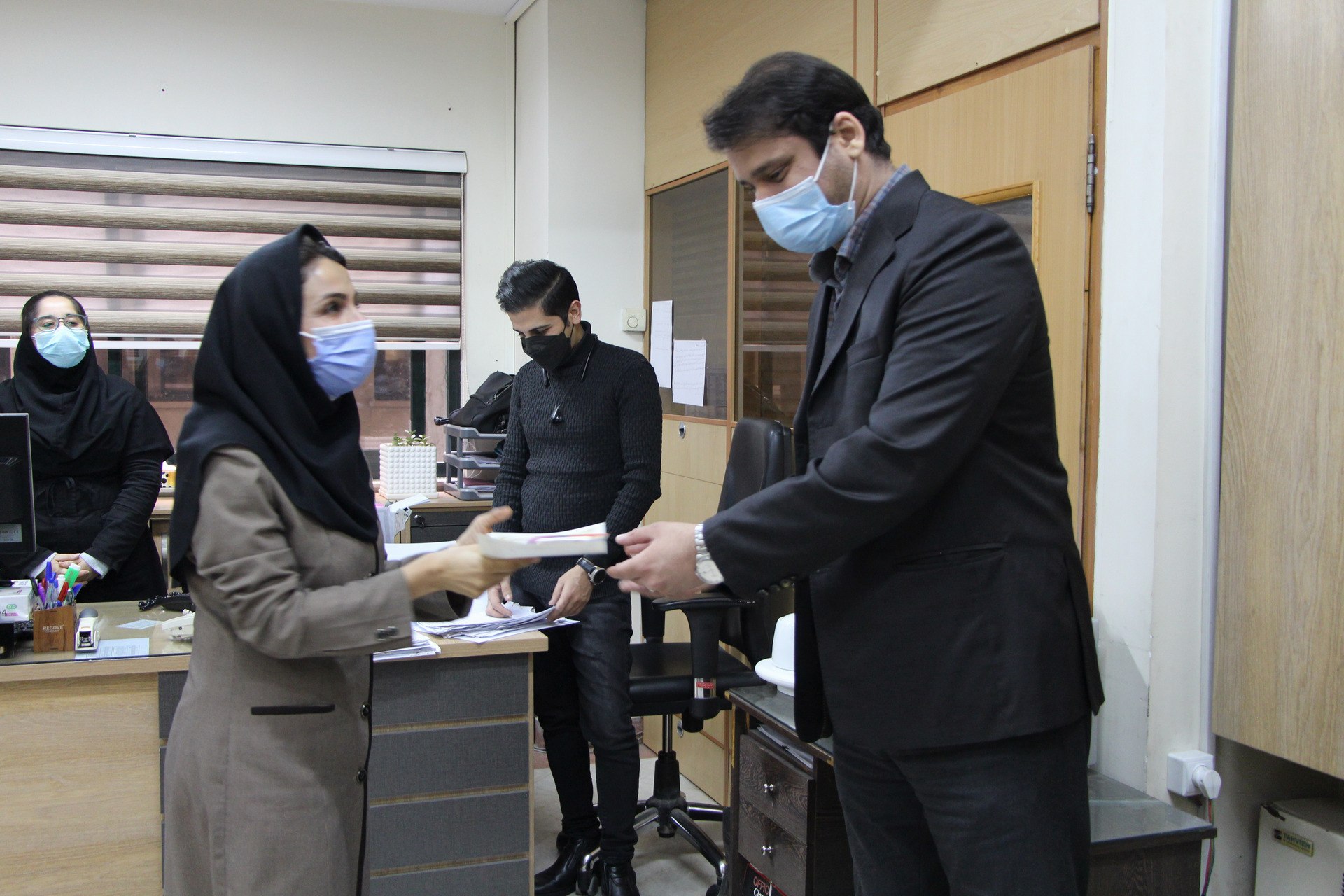 در ادامه مدیر بیمارستان به هریک از کارکنان حسابداری لوح تقدیر تقدیم کرد.